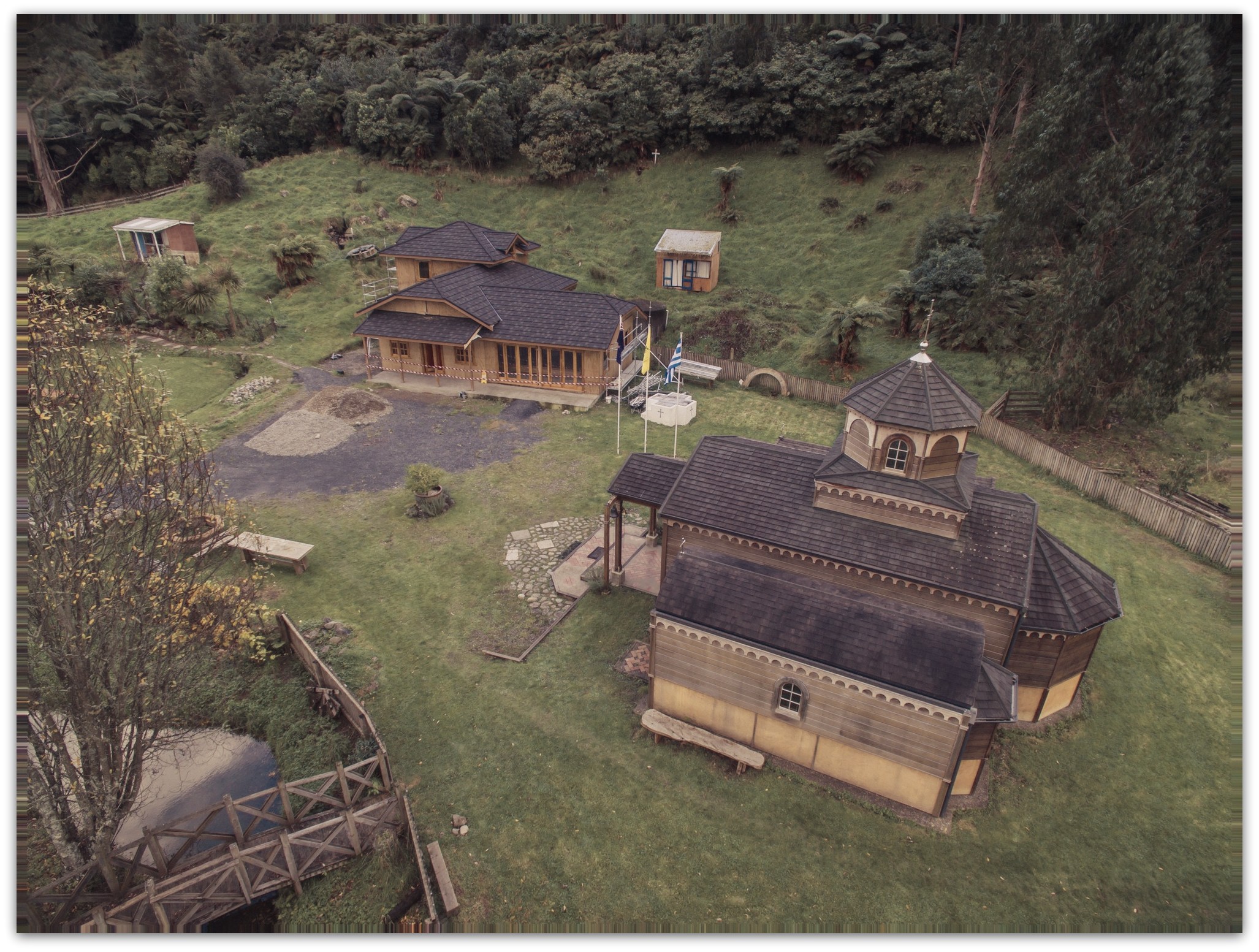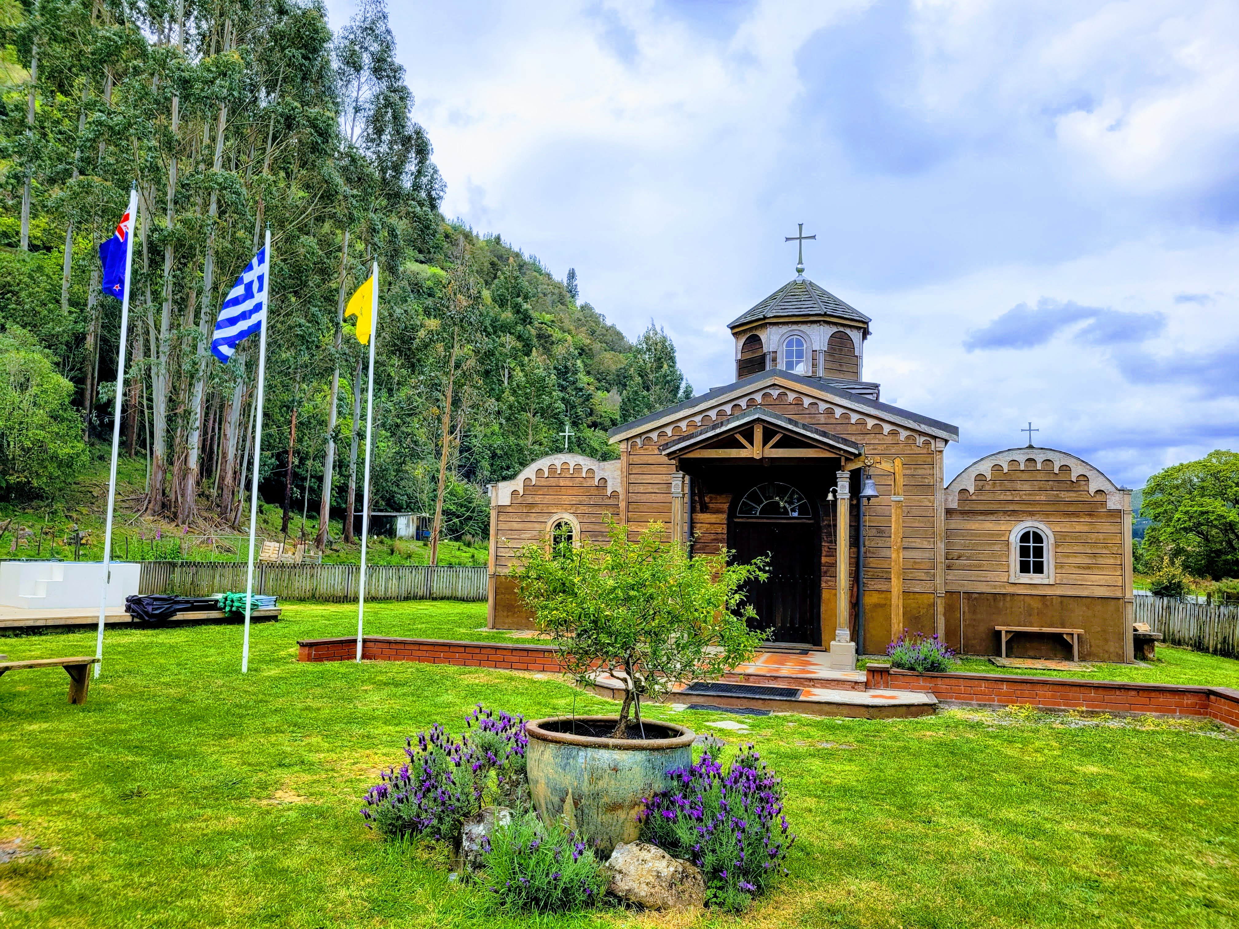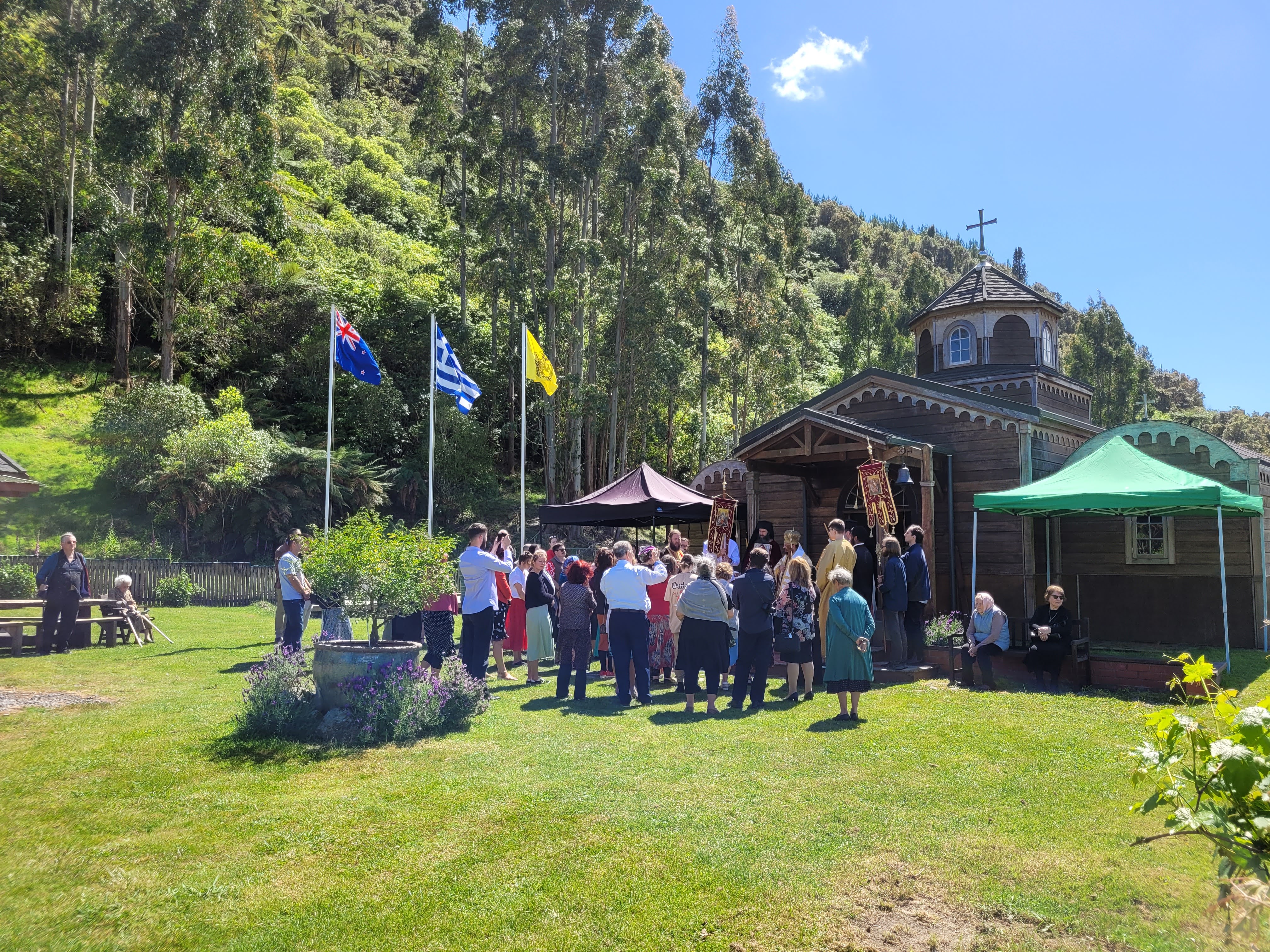 The story behind the location of the Monastery began with a lengthy three year search that had yielded no perfect place. With no promising leads in sight, a decision was made to continue the search while simultaneously looking for a sign from God . That sign came when the then Archbishop of New Zealand visited a vast and beautiful plot of land with a house, native bush and a stream for sale near the town of Levin; it seemed just right. The Archbishop looked about him and spoke these words ‘This is the place.’ And indeed it was, for shortly after came the surprise, the seal of approval, the sign of Divine providence. It was discovered that decades before, there had been two monks, New Zealanders, who had become Orthodox and subsequently taken monastic vows. They had tried to establish a Monastery in New Zealand but their efforts had ultimately failed. Subsequently one of the monks, Nicolas, died. Nicolas had been born in Levin - not only in Levin, but in fact on the very land that had been purchased as the site for the Monastery. In a beautiful weaving together of past and present, the builder chosen to construct the small Monastery church on the land where Nicolas had been born turned out to be his brother-in-law, Peter. Fittingly, the monk Nicolas’ final resting place is also in the small town of Levin - the town that houses the only Orthodox Monastery in New Zealand.